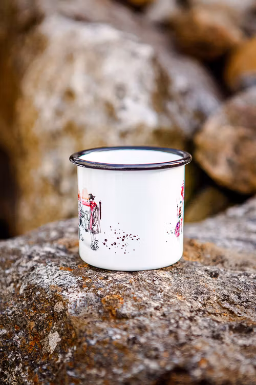Muggarna är tillverkade av vit emaljerad, rostfri plåt av premium kvalitet och är robusta, tåliga och ett miljövänligt alternativ både ur hållbarhets- och miljöperspektiv. De är emaljerade med dubbla lager, vilket ger en mer hållbar produkt mot vissa lite tunnare muggar på marknaden. Fabriken där de tillverkas jobbar aktivt med sitt miljöarbete, följer strikt EU:s direktiv och muggarna innehåller inte nickel eller andra farliga ämnen. Tänk dock på att emalj inte är stöttåligt - emaljen kan spricka vid hårda stötar och får då en liten svart fläck där emaljen lossnat - men muggen kommer fortfarande gå lika bra att använda. :) Det syns bara att den har levt lite!
