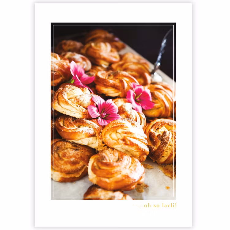 Fint fotokort med motiv av härliga kardemummabullar. Digitaltryckt i Sundsvall på ett fint obestruket, kraftigt papper och det lyxiga konstkortet är fint att ge bort för att sedan kunna sparas eller ramas in, och får på så sätt ett långt liv!