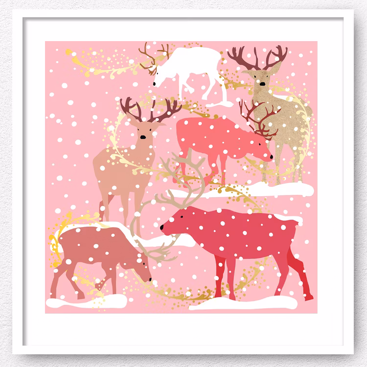 Det här motivet är mitt favoritmotiv under vintern, och så roligt även många andras! Jag älskar hur det är stämningsfullt och vackert på väggen under jul, men även under hela vintern. Snön fortsätter ju yra över renarna och hjortarna under den magiska tid som vintern kan vara, även tiden efter jul.